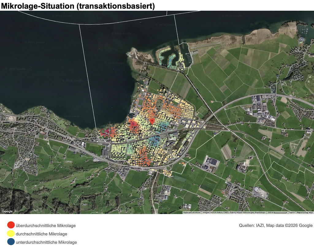 Der Immobilienmarkt in Lachen SZ hat sich in den letzten Jahren sehr dynamisch entwickelt. Laut dem unabhängigen IAZI Location Report sind die Immobilienpreise innerhalb von fünf Jahren um knapp 40 Prozent gestiegen, während Leerstand und Angebot weiterhin tief bleiben. Die im Location Report ausgewiesenen Transaktionspreise zeigen, dass Einfamilienhäuser pro Quadratmeter Nettowohnfläche die höchsten Werte erzielen.